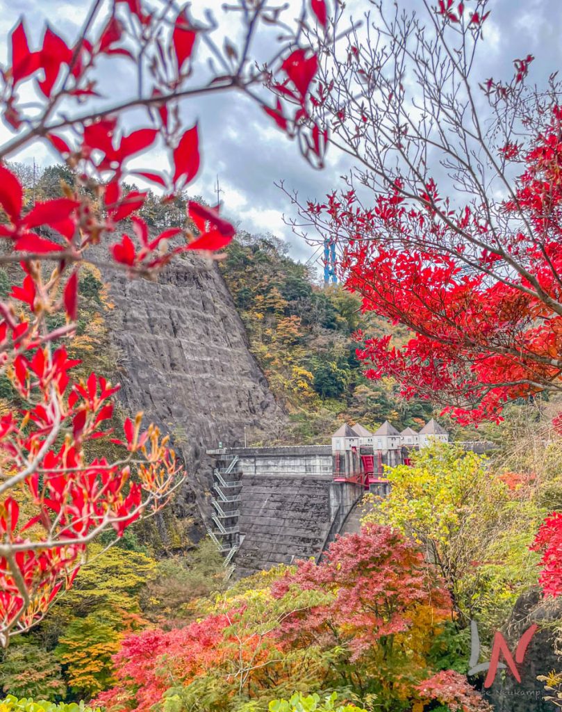 Erste Station der Reise war die Ryujin Otsurihashi Brücke. Viel kann ich allerdings dann doch nicht dazu sagen, weil wir, meine Freunde und ich, gar nicht auf die Brücke gegangen sind :D. Wir sind nämlich zu dem Staudamm darunter gefahren, von wo aus man sich die Brücke von unten anschauen konnte.