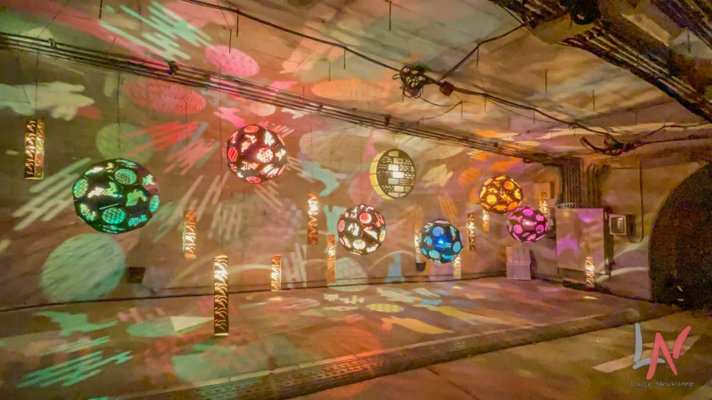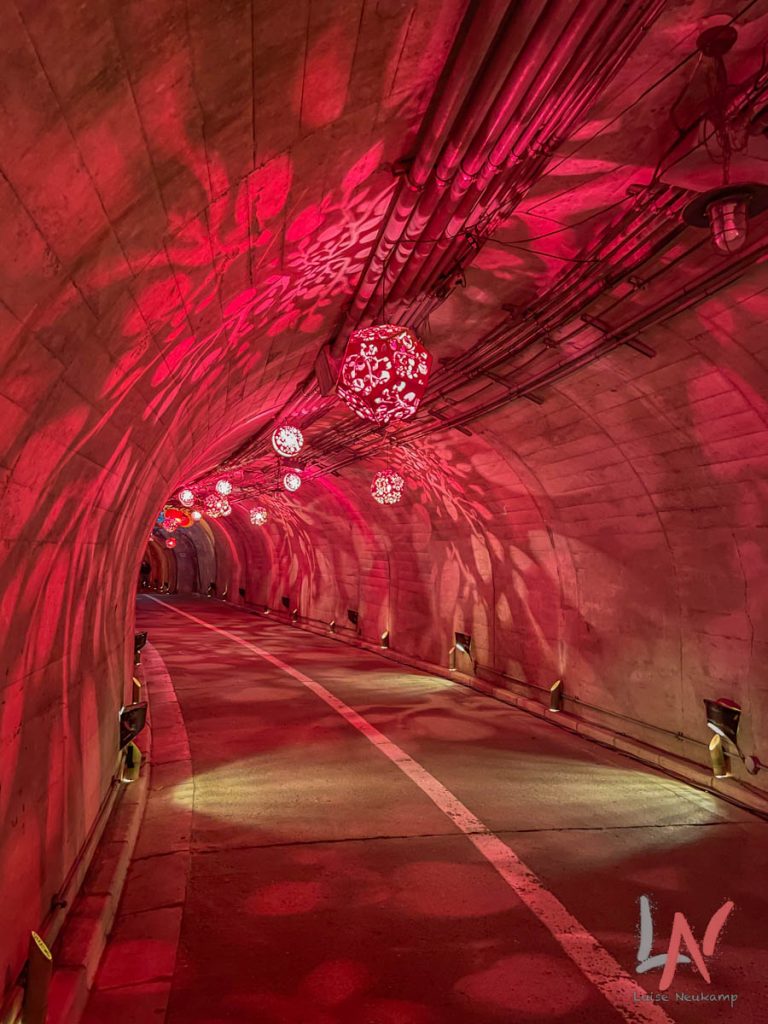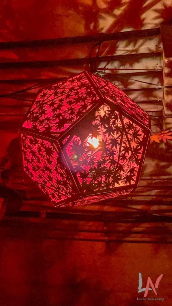 Erstmal musste man durch einen Tunnel laufen und der war schon ein Highlight an sich. Am Anfang waren die Lampen noch weiß (leider gibt es davon nur unscharfe Bilder) und je näher man dem Wasserfall kam, desto roter wurden sie. Es gab auch welche mit japanischem Ahorn ^^.
