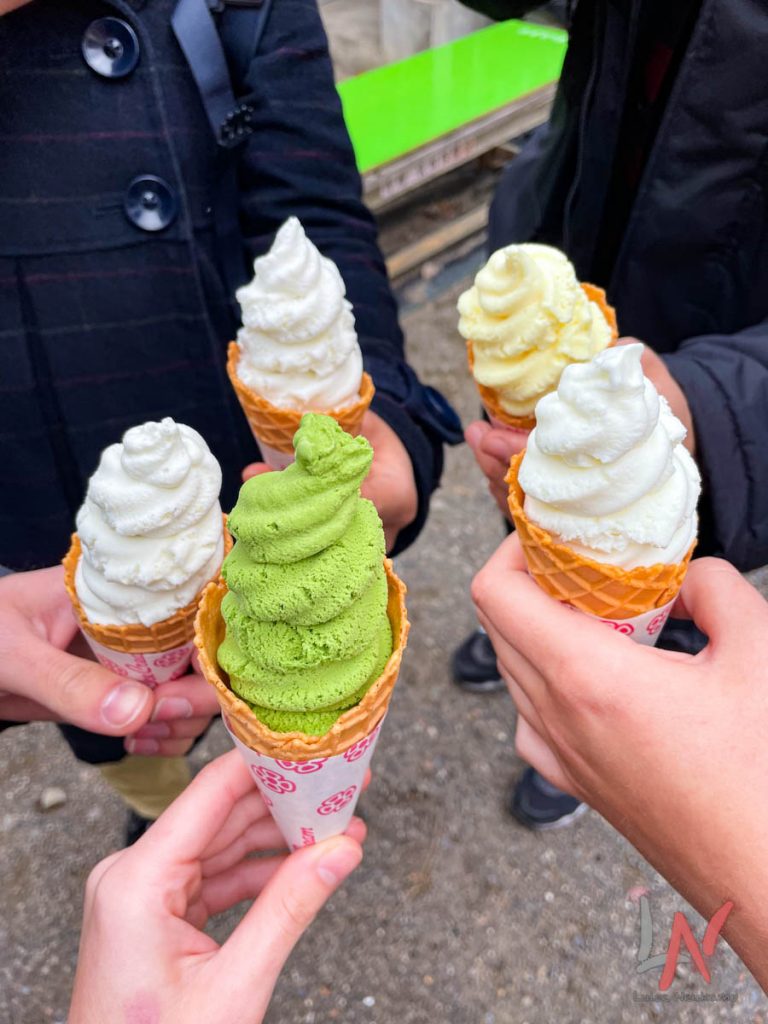 Als Nachtisch gab es dann Softeis, wovon es in Japan eine Menge an verschiedenen Sorten gibt. Ich hatte zum Beispiel Matcha-Eis, aber es gab auch Zunda (Edamame) oder Fisch :D.