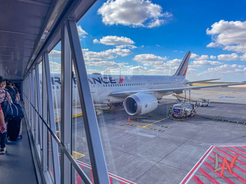 Wir hat­ten genau drei Stun­den Umstiegzeit in Paris und trotz der lan­gen Strecke, die wir zurück­le­gen mussten, war es mach­bar. Am näch­sten Gate hat­ten wir sog­ar zwei Stun­den Zeit. Man musste ein­mal mit dem Bus zwis­chen zwei Ter­mi­nals fahren und dann noch gefühlt zwei Kilo­me­ter laufen ;).